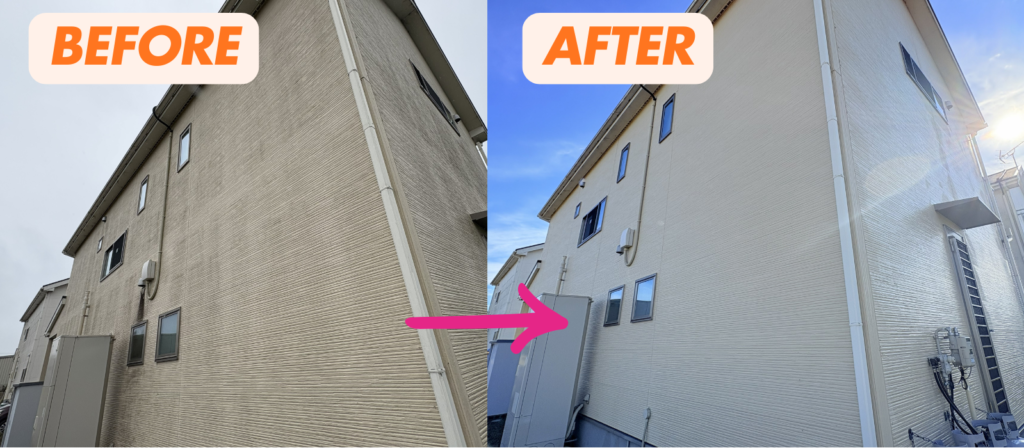 仕上がり: まるで塗り替えたような、本来の外壁の明るさを取り戻します。